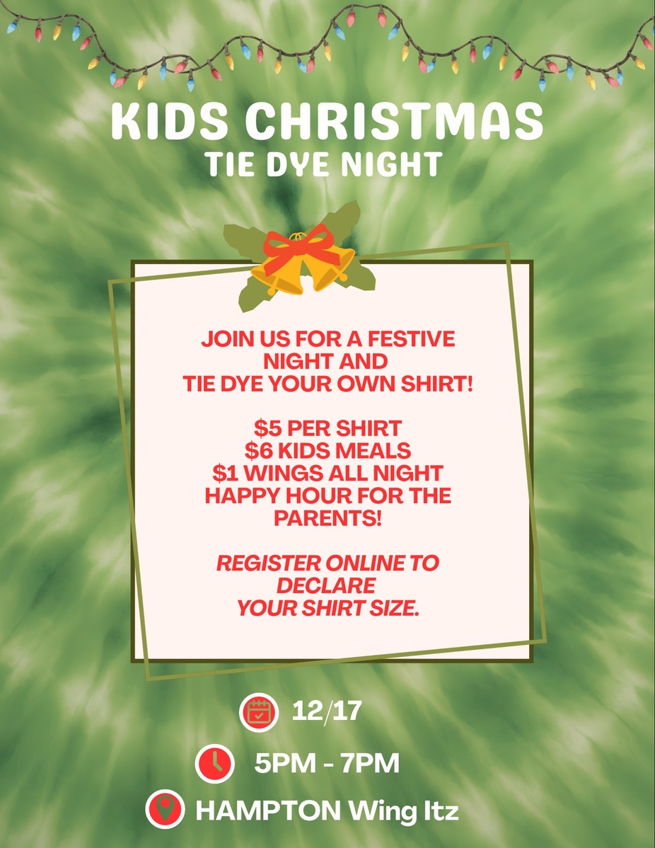 Join us for Kids Tie Dye night! Register and select t shirt size here: